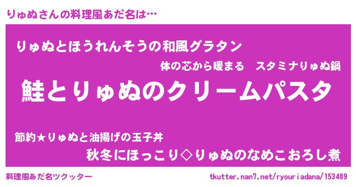 | ヒーロー風カッコイイあだ名 | 『天空の使者りゅぬ』『スーパーリュヌ』 |