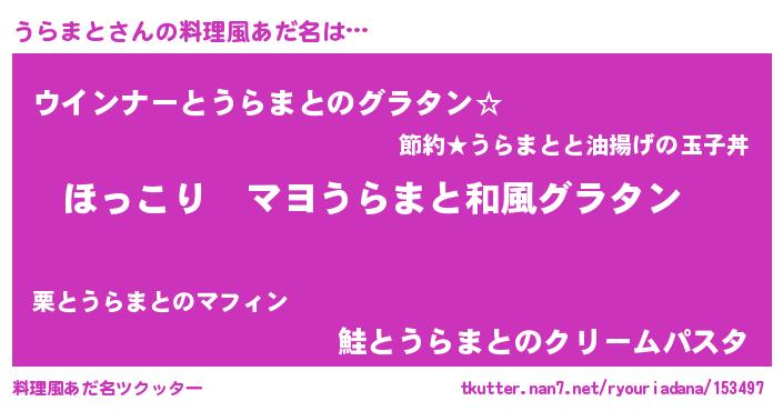 | ヒーロー風カッコイイあだ名 | 『仮面ウラダー』『ウルトラうらまとマン』 |