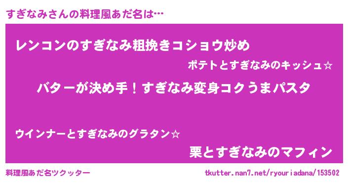 | ヒーロー風カッコイイあだ名 | 『愛の使者すぎなみ』『最強戦士スギナミ』 |