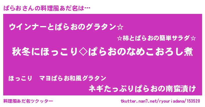 | 男性向けラノベタイトル風あだ名 | 『ぱらおに滅ぼされるだけの簡単なお仕事です』 |