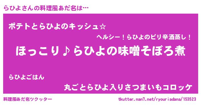 | 意味不明あだ名 | 『ペロリンらひよ』『自称らひよ』 |