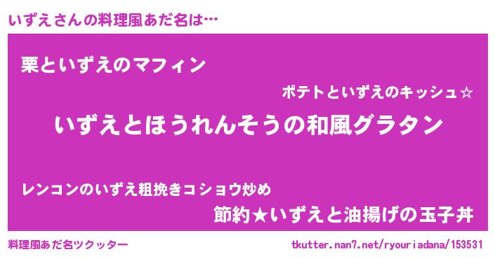 | 意味不明あだ名 | 『ニラ科いずえ属』『ペロリンいずえ』 |