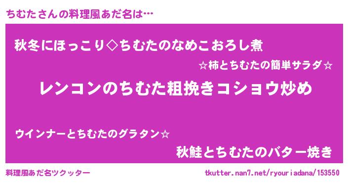 | 女子向けラノベタイトル風あだ名 | 『ちむたなんてお断りですっ。』 |