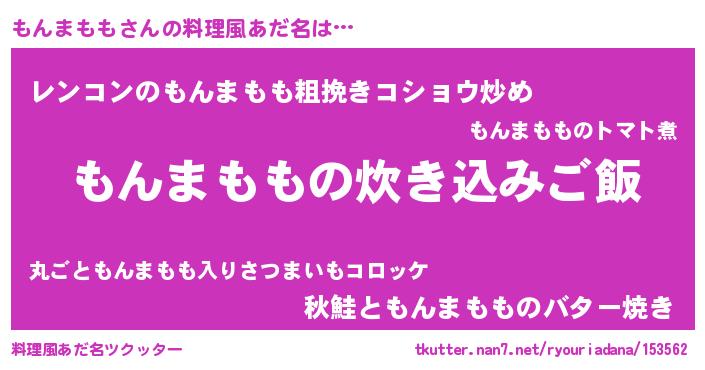 | 男性向けラノベタイトル風あだ名 | 『うちのもんまももが世界を掌握している!』 |