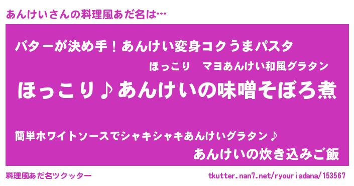 | 意味不明あだ名 | 『ペロリンあんけい』『自称あんけい』 |