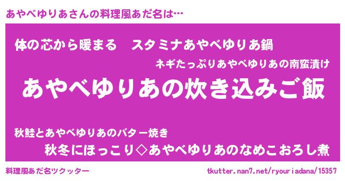 | 欧米人風あだ名 | 『あやべゆりあ・ステッグマイヤー』 |