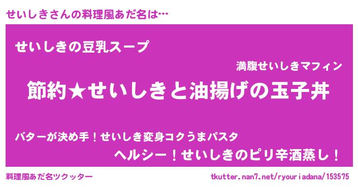| ヘコむあだ名 | 『せいにー』『せいぷりん』『豆乳』 |