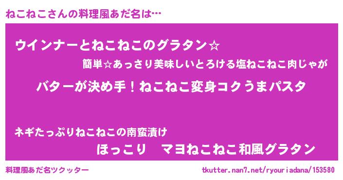 | 欧米人風あだ名 | 『ダニエルねこねこ』『マイケルねこねこ』 |