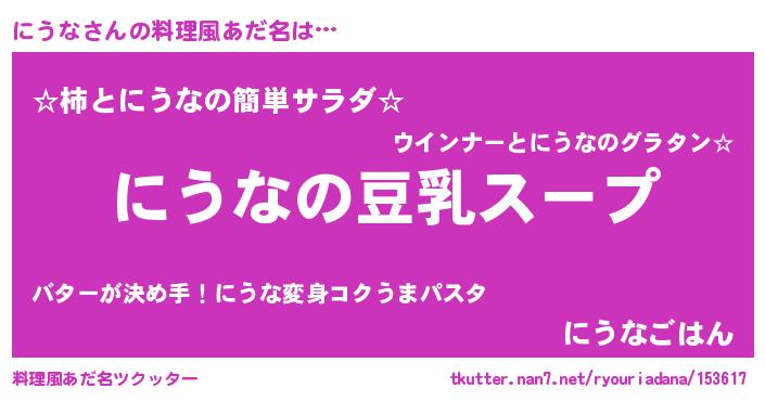 | 女子向けラノベタイトル風あだ名 | 『にうなは平凡を望む』『にうな恋絵巻』 |