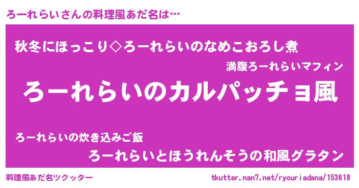 | ヘコむあだ名 | 『ろーれらい(笑)』『なまこ酢』 |