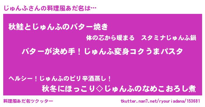 | ヘコむあだ名 | 『じゅんふ(震え声)』『豆乳』 |