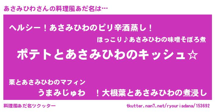 | ヒーロー風カッコイイあだ名 | 『幻影騎士アサ』『最強戦士アサミヒワ』 |