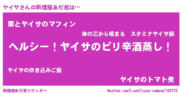 | ヒーロー風カッコイイあだ名 | 『最強戦士ヤイサ』『慈愛の使者ヤイサ』 |