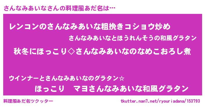 | 胡散臭い通販商品みたいなあだ名 | 『芸能人もオススメする高麗人参…その名も「さんなみあいな」』 |