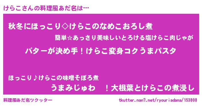 | ヘコむあだ名 | 『なまこ酢』『けらこ(笑)』 |