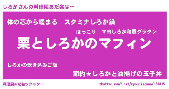 | ヘコむあだ名 | 『つくし』『しろにゅー』『しろ太郎』 |