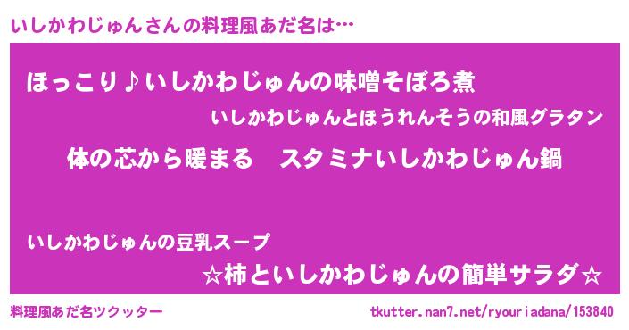 | 男性向けラノベタイトル風あだ名 | 『やはりいしかわじゅんの青春ラブコメはまちがっている 』 |
