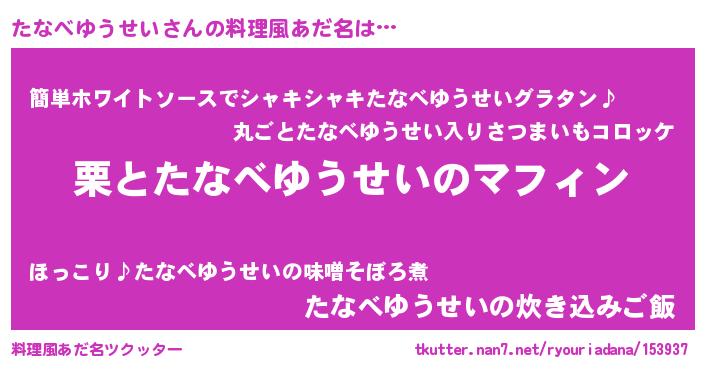 | ポケモン風あだ名 | 『タナゴンZ』『ヒタナベユウセイ』 |