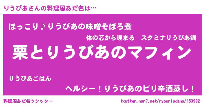 | ヘコむあだ名 | 『りうっふぃ~』『牛乳』『りうっ子』 |