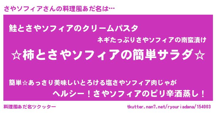 | 欧米人風あだ名 | 『さやソフィア・ステッグマイヤー』 |