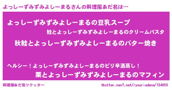 | 伝説のあだ名 | 『古より伝わる吟遊詩人よっしーずみずみよしーまる』 |