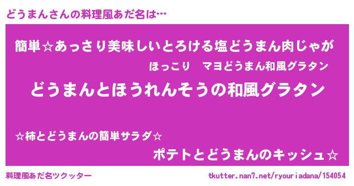 | 胡散臭い通販商品みたいなあだ名 | 『前代未聞の健康食品…その名も「どうまん」』 |