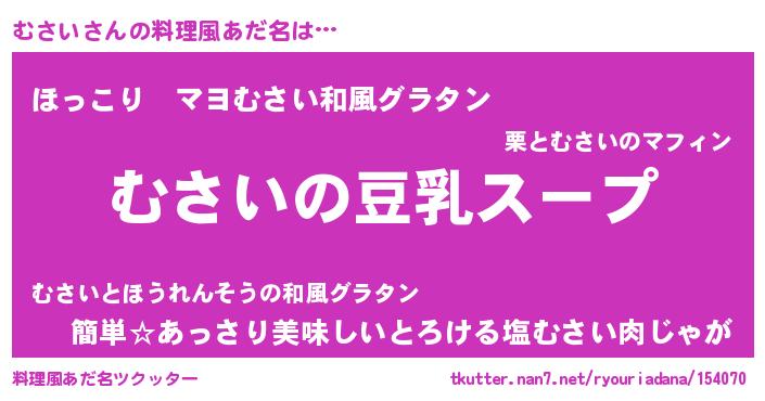 | ヘコむあだ名 | 『むさお』『むさい(笑)』『つくし』 |