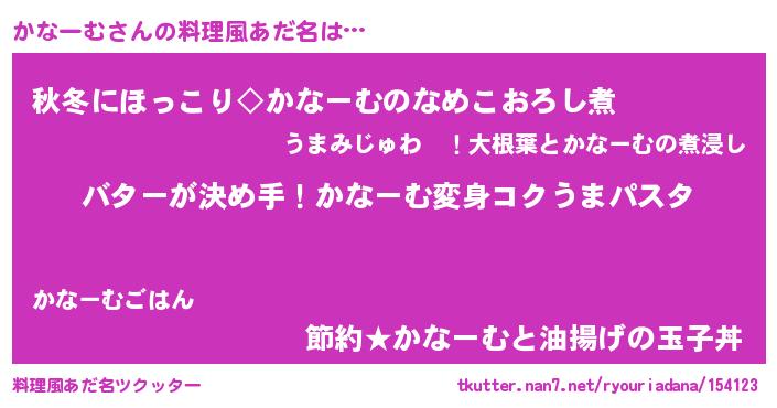 | 女子向けラノベタイトル風あだ名 | 『かなーむ恋絵巻』『かなーむの婚約者』 |