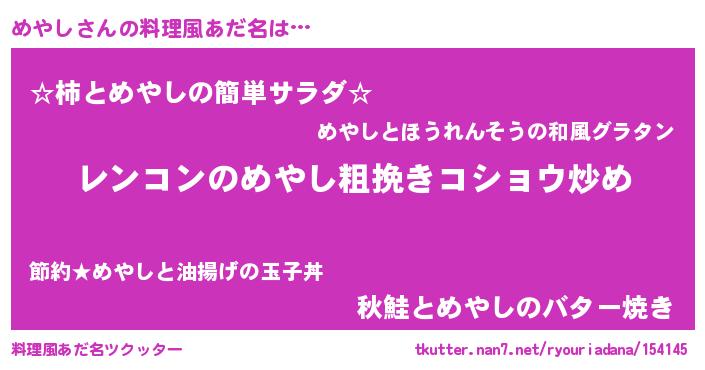 | 意味不明あだ名 | 『自称めやし』『永久保存めやし』 |