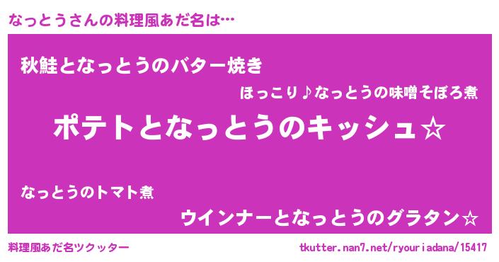 | 男性向けラノベタイトル風あだ名 | 『なっとうの嫁は女の子じゃないと思った?』 |