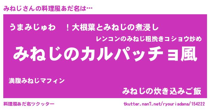| 意味不明あだ名 | 『住所不定無職みねじ(85歳)』『自称みねじ』 |