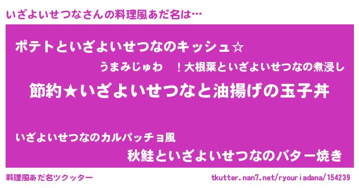 | ポケモン風あだ名 | 『イザチュウ』『ヒイザヨイセツナ』 |