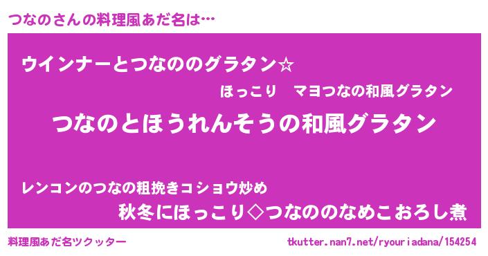 | ヒーロー風カッコイイあだ名 | 『ウルトラつなのマン』『仮面ツナダー』 |