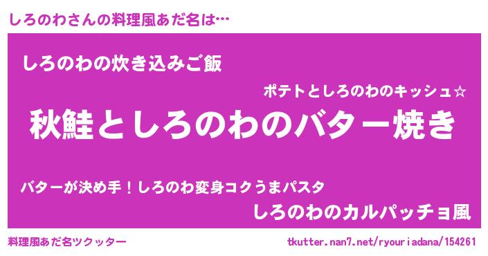 | 胡散臭い通販商品みたいなあだ名 | 『来世でも幸せになれる健康食品…その名も「しろのわ」』 |