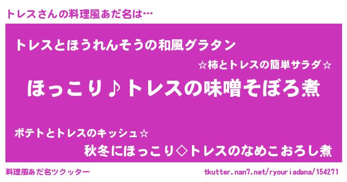 | 女子向けラノベタイトル風あだ名 | 『(仮)トレスのやんごとなき事情』 |