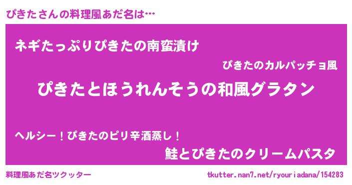 | 女子向けラノベタイトル風あだ名 | 『ぴきたの玉の輿計画!』『闇のぴきた』 |