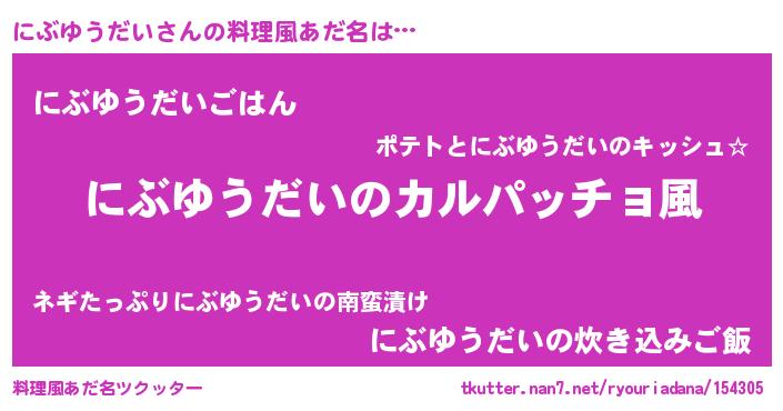 | 意味不明あだ名 | 『住所不定無職にぶゆうだい(65歳)』 |