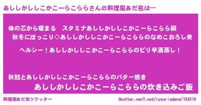 あししかししこかこーらこららさんの料理風あだ名をツクッター!