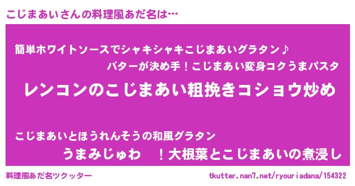 | 胡散臭い通販商品みたいなあだ名 | 『テレビで話題の高麗人参…その名も「こじまあい」』 |