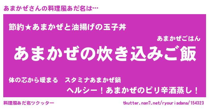 | 男性向けラノベタイトル風あだ名 | 『うちのあまかぜが世界を掌握している!』 |