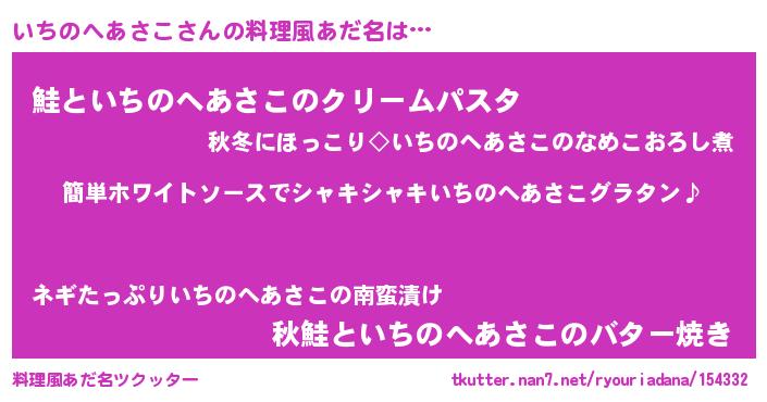 | 意味不明あだ名 | 『とにかく怪しいいちのへあさこ』 |