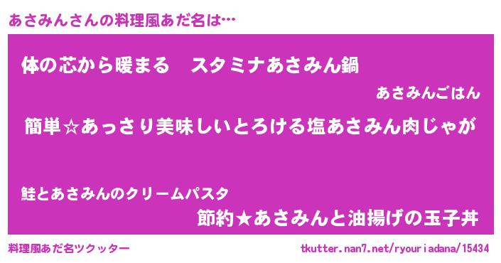 | 胡散臭い通販商品みたいなあだ名 | 『前代未聞の健康食品…その名も「あさみん」』 |
