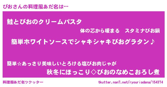 | 女子向けラノベタイトル風あだ名 | 『びお様がみてる』『死神びおの再婚』 |