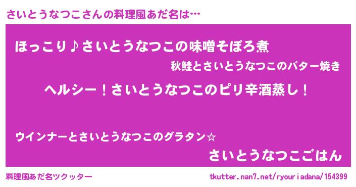 | ヘコむあだ名 | 『さいにゅー』『さいとうなつこ(小並感)』 |