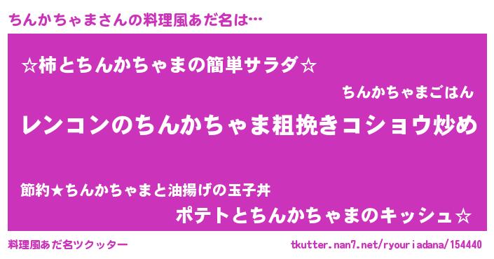 | 女子向けラノベタイトル風あだ名 | 『ちんかちゃまなんてお断りですっ。』 |