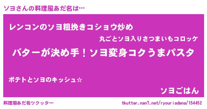 | ピコ太郎風あだ名 | 『ソソ太郎』『ソヨ次郎』『ソコ次郎』 |