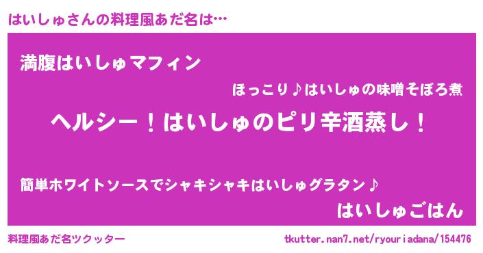 | ヘコむあだ名 | 『はいしゅ(笑)』『はいにゅー』 |