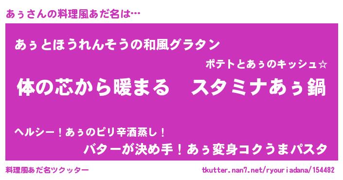 | 女子向けラノベタイトル風あだ名 | 『あぅの雑貨屋さん』『あぅ恋絵巻』 |