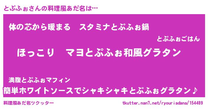 | 男性向けラノベタイトル風あだ名 | 『この素晴らしい世界にとぷふぉを!』 |