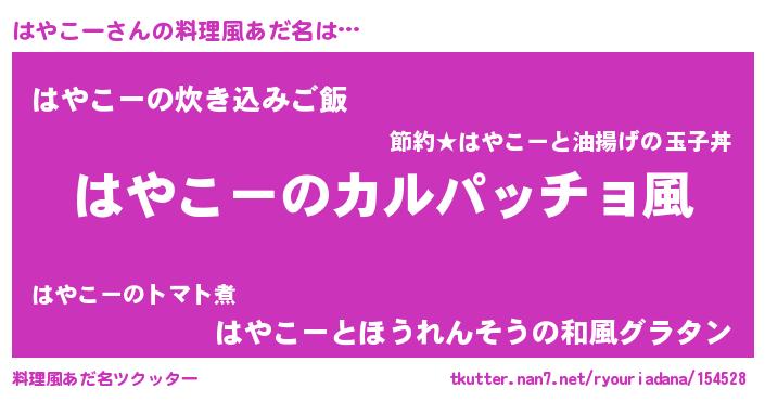 | 意味不明あだ名 | 『住所不定無職はやこー(10歳)』 |